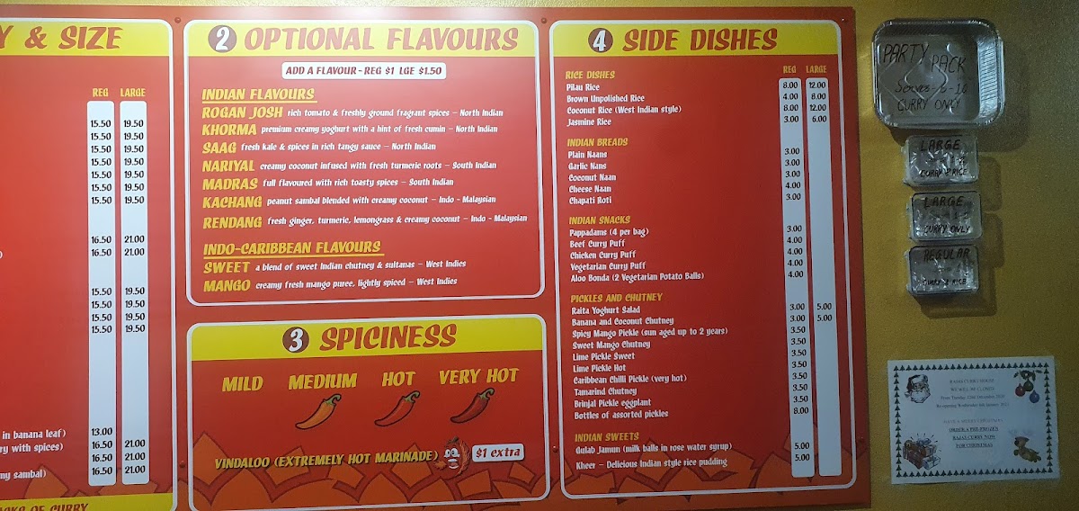 Introducing the menu at Raja's Curry House, a celebrated Indian restaurant located at 169 Charters Towers Rd, Hermit Park, is a culinary journey into spices and tradition. Their diverse offerings are sure to delight any palate, featuring rich favorites like Rogan Josh, creamy Khorma, and spicy Madras. The Saag and Kachang provide a vegetarian sanctuary with bold flavors that are both comforting and satisfying.